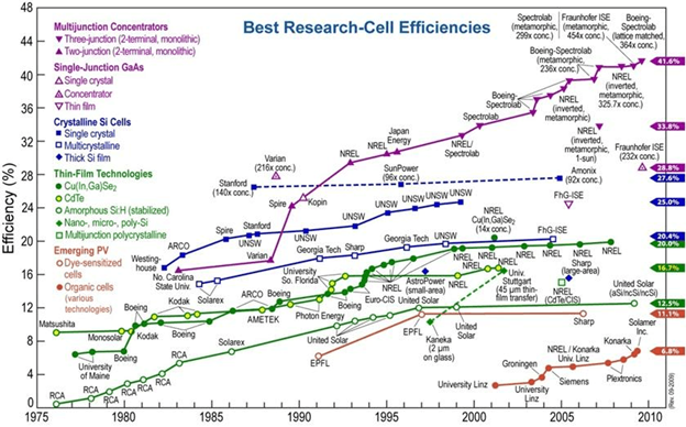 Most of the solar cells currently on the market are silicon solar cells. In 1954, the crystalline silicon solar cell was born, with an initial Power Conversion Efficiency (PCE) of about 6%. By 2020, the PCE had increased to around 26%, approaching the theoretical limit of 29% for silicon solar cells. Although perovskite solar cells' history is shorter than silicon cells, their efficiency has rapidly improved in recent years. As shown in Figure 1, the trend of solar cell efficiency growth reported by the National Renewable Energy Laboratory (NREL) of the United States shows that the PCE of perovskite solar cells has increased from about 14% in 2013 to around 26% in 2020. In addition, lamented cells composed of perovskite and silicon achieved a high PCE of about 29.5% in 2020. The growth rates of these two types of perovskite cells are significantly higher than others. Due to the enormous potential of perovskite in the solar cell industry, it has become a research hotspot in recent years.